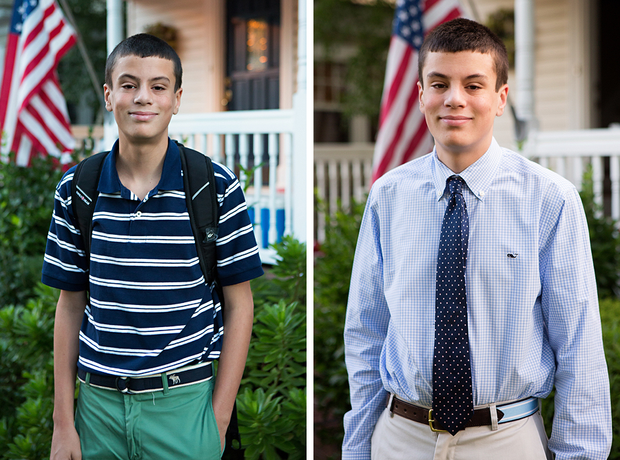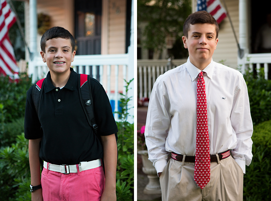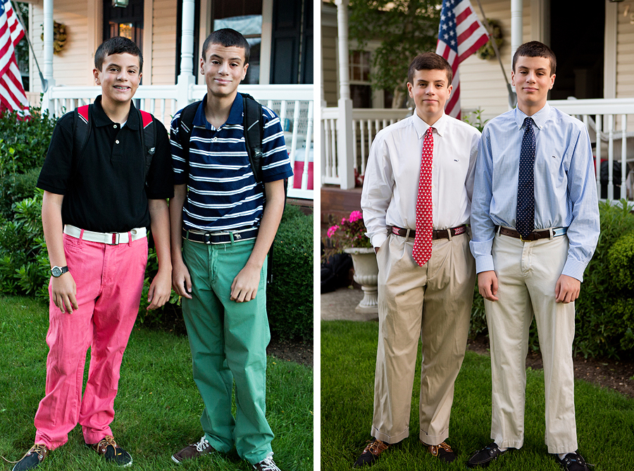 I woke up at 6:15am today (which never happens cause I usually stay up till 100 o’clock every night) to take the “last day of school” picture. The only other time that ugly hour happened was on the first day of Regis for the boys back in September. No need to worry though, I did go back to bed. Today is their last day of classes, finals start on monday and by the 11th they’ll be all done with their freshman year of high school. I feel like this year was on super fast forward- I can’t believe its over. And quite a change in these boys too. They’re kinda like different people than they were in September. And way more tired. (Jack on the left, Patrick on the right).