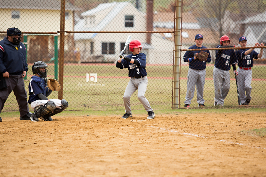 So far, we haven’t been real lucky with the weather on game days. Today might be the first nice one if the weather lasts-I’ve worn my winter coat to the last two SSMS baseball games. Unfortunately, another loss for the team and Jack sat the bench this game. But at least I got some decent pictures (I was able to get onto the field this time).