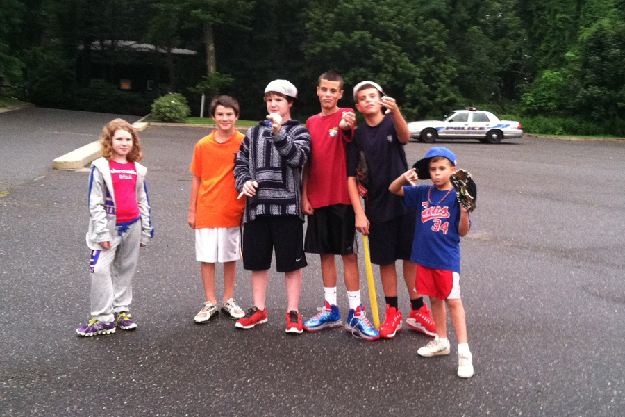 Katie, Spencer, Connor, Patrick, Jack and Timmy. Katie has the right idea standing far away from the lunatics.