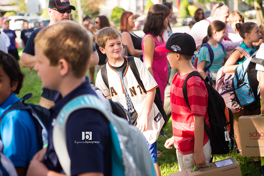 Timmy actually had school earlier than Jack & Patrick today (they had orientation in the afternoon) so they came along to see him off. He had his brand new Vineyard Vines shep shirt all ready to wear yesterday, but with it being 90 degrees (ironically, the first 90 degree day the whole summer fell on the 1st day of school) he had to skip it. Still terribly handsome though!