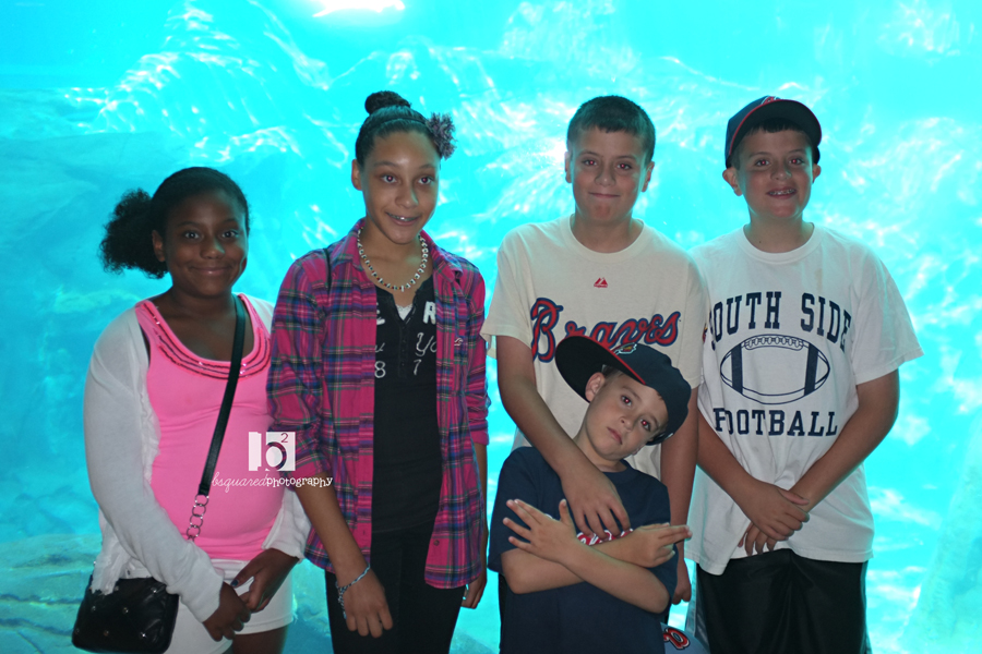 The kids on the way into the Aquarium.
