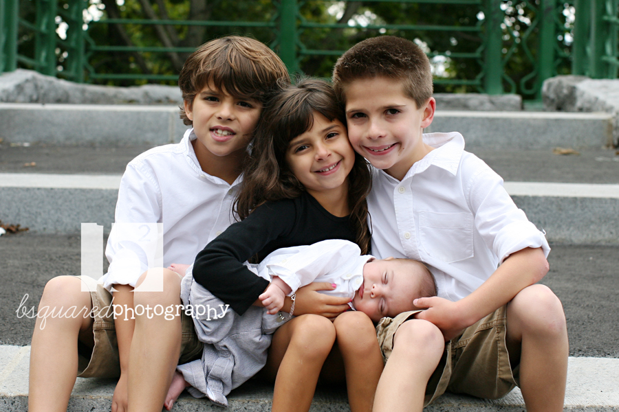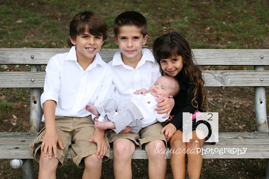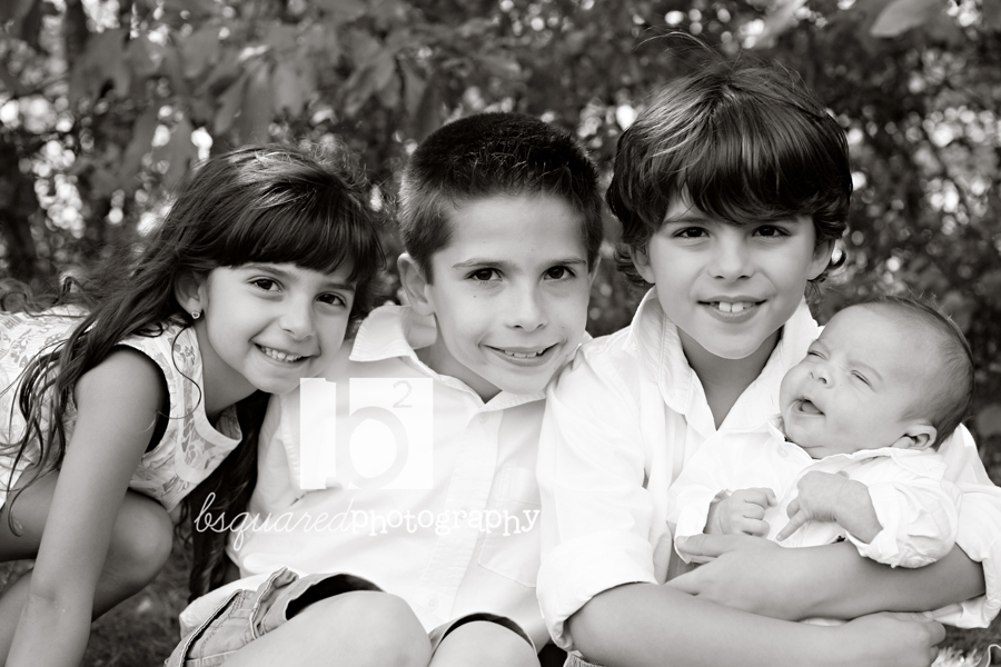 Three gorgeous kids (including a set of twin boys) with a brand new (also gorgeous) little brother as well.