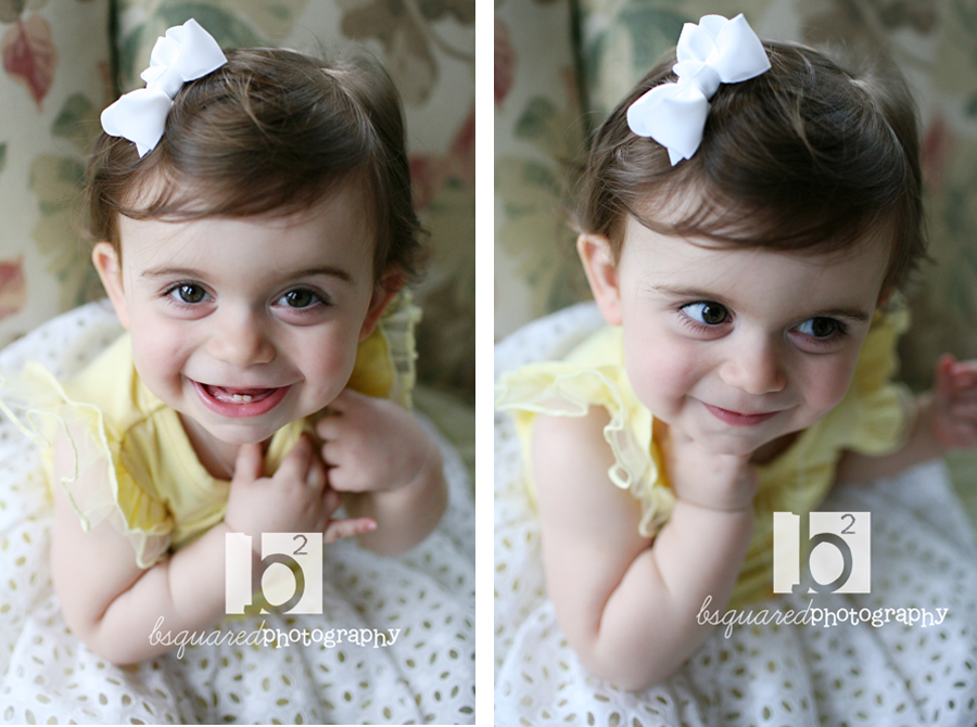 The fist under the chin in the picture on the right? Too cute!