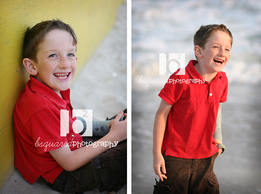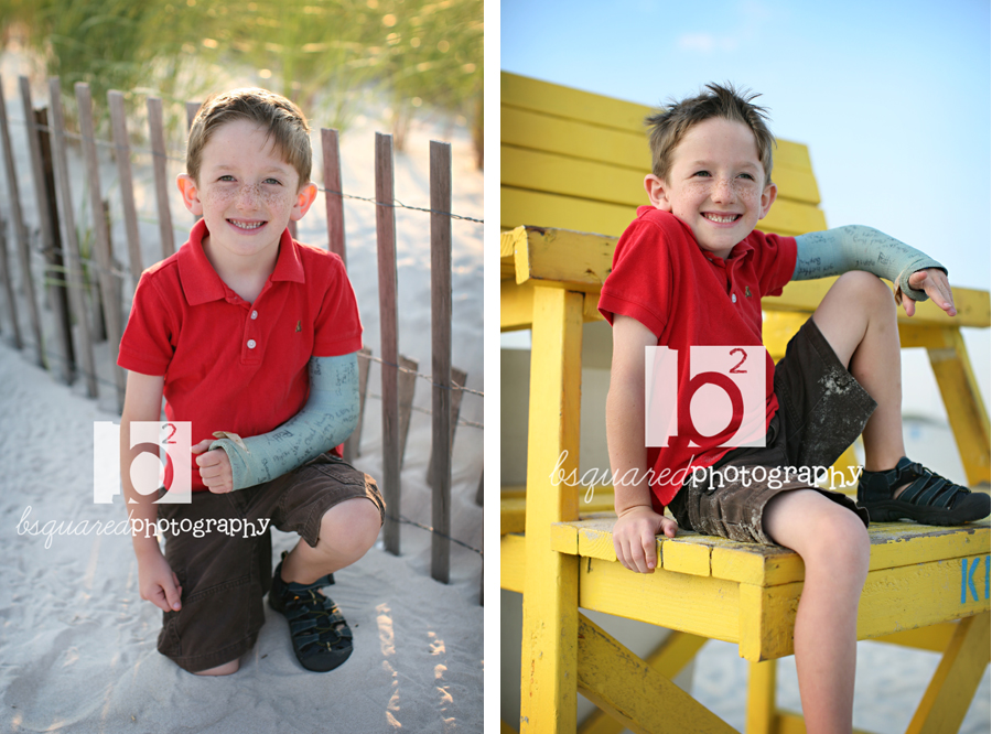 A sister of a friend and previous bsquared client contacted me for her very own shoot and was I ever glad she did! The sheer cuteness of this boy and his freckles (and even the broken arm. From what else? Monkey bars on the 1st day of summer.) was totally fun to photograph. Loved him and his littlebig personality! His aunt came along for some laugh support and was very helpful in that area. The whole family was so nice and so fun to work with. Thanks for making the trek to the beach!