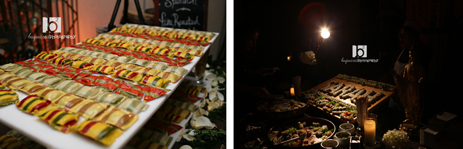 The cocktail hour was unbeliveable with a hotdog stand, hamburgers/sliders, a tapas and shot bar, sushi station (with Sarah’s name spelled out in sushi!), gourmet ravioli, and on.