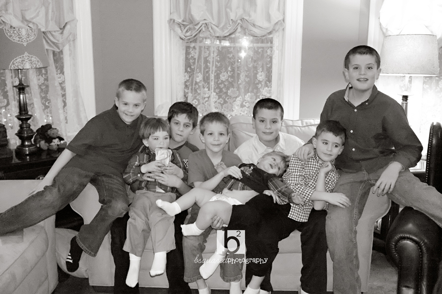 All the boys. And…we recently found out that Joe & Gail (who are having their third) will be welcoming…wait for it…..a BOY! Yup, another one. So that is going to be 9 grandchildren/cousins. And 9 boys. Ridic.