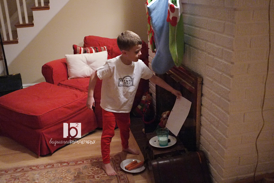 Timmy leaving a note for Santa along with carrots and milk & cookies.