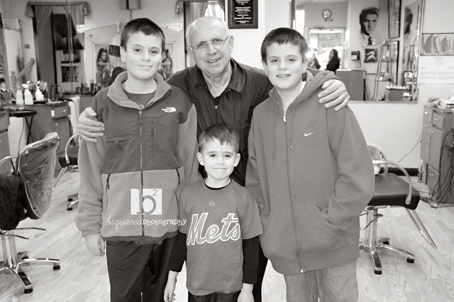 We were SO sad to learn of Mario’s retirement earlier this month. Mario has been cutting the boys hair since all of their very first haircuts and John’s since he was in high school. He’s off to a whole new life in Florida and we are all so, so sad to see him go. The man has the patience of a saint. He would never flinch or bat an eye when the big boys were babies and would scream bloody murder the entire time they were getting haircuts. That went on for about a year before the stopped crying like someone was cutting off their arms instead of their hair. But Mario never minded- he was always so calm and nice no matter how loud they screamed. He would let Timmy spray him with the water bottle, stand up in the chair with the blowdryer -all to keep him happy while he was cutting his hair. When I told the boys that their beloved Mario was retiring, there were definitely tears shed (from me, too) and Timmy said he never wanted anyone else to cut his hair, ever and cried a river of tears. Break my heart, kid.