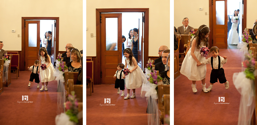 Toddling down the aisle. Love the short pants, too!