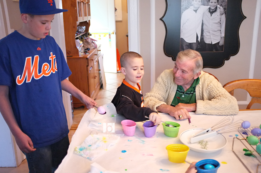 The next morning, the boys went to Easter mass while I baked paper bag cookies, brownies and a green bean cassarole. We went over to Grandma & Grandpa’s with my parents, Uncle Nelson, Aunt Anne & Bobby for dinner. Or Linner. (since it was about 4pm when we ate, it is NOT dinner).