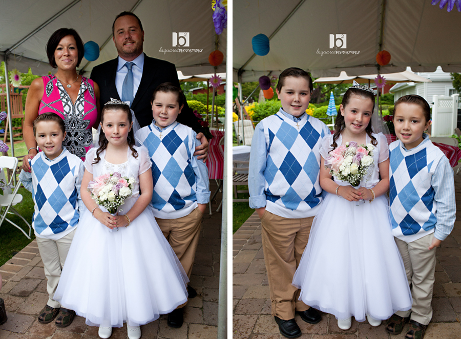 More of the rain on this day, but thankfully they had a big white tent in the backyard with lots of bright and pretty color plants and decorations for the party to brighten things up a bit. And you kind of tend to ignore the weather with a smile like this one.