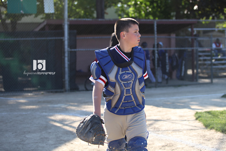 A few hours and a load or two of laundry later, it was time for the little league game. Patrick started at catcher.