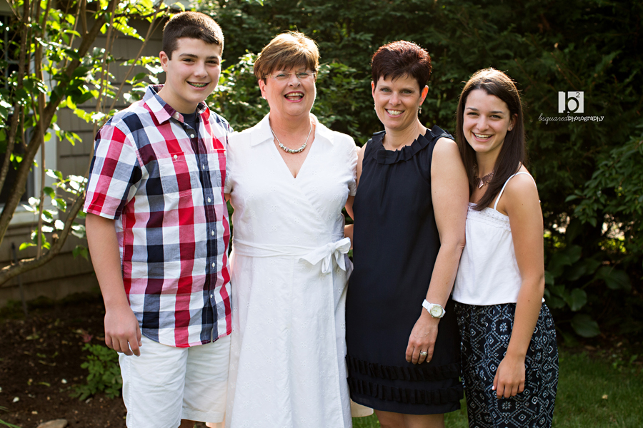 As a gift for their mom/grandma, this fantastic family chose a backyard session when they were all together for Annie’s high school graduation. The part of the family that was hosting the session live around the block from me so I rolled my suitcase of gear on over and shot in the pretty backyard with gorgeous light. The seemingly constant rain this year has been a huge pain and a giant bummer and caused so many sessions to be rescheduled, but when there is sun the light is amazing. So there’s that. I think mom/grandma was really happy to have all her kiddies (both grown and little) together and I hope I captured that in the photos.