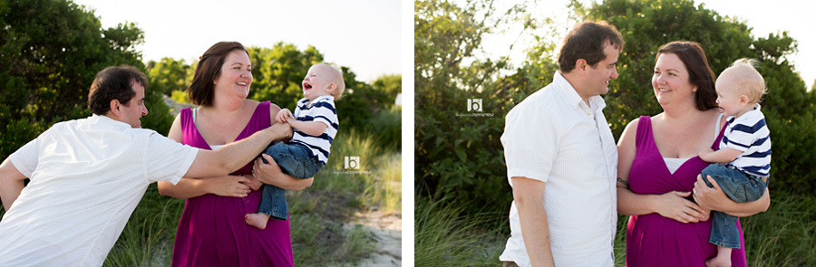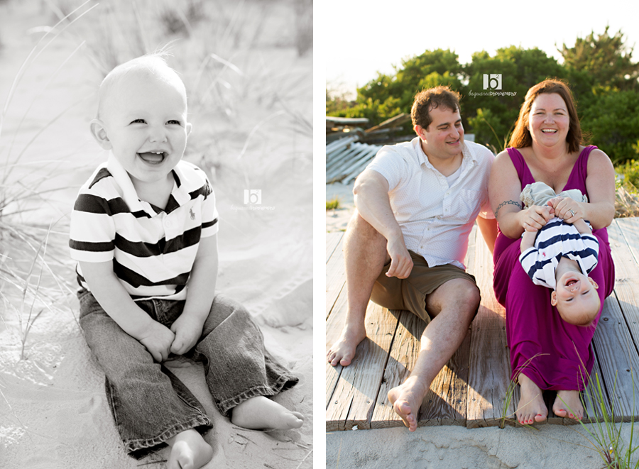 This was a session I was seriously excited for. Caren & Tim were “my” bride and groom back in 2010 for their wedding in Jamaica and since then, they’ve welcomed a beautiful baby boy (who is now just over a year old) into their family. They live far away in upstate New York, but come down every summer to visit family & friends. When they contacted me to do a session for them, I was super excited to not only see them but to meet and photograph Owen for the first of what I hope to be many times. Of course the session had to be at the beach! But someone was not a fan of the sand. Or the water. Made for an interesting session, but we got it done with singing, food, a lot of time being held and tickles for smiles.