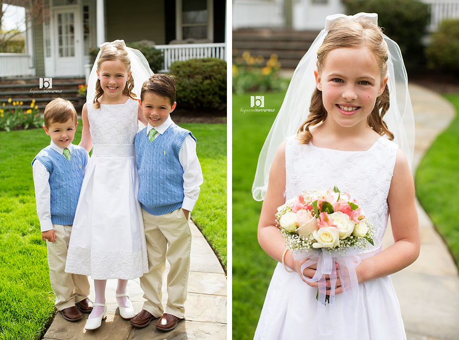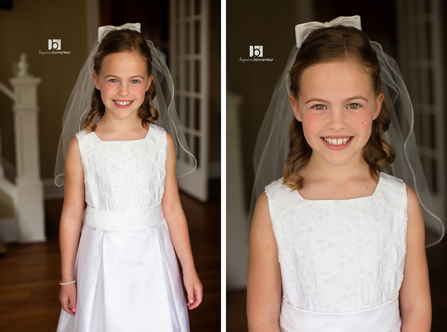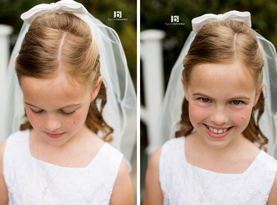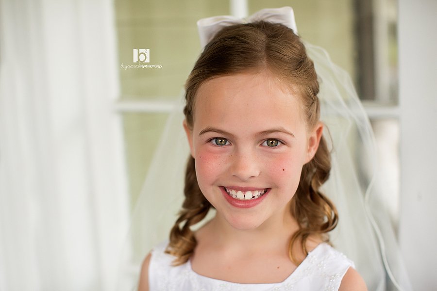 Communion season this year kicked off with a favorite bsquared family who I’ve been lucky enough to photograph a bunch of times (here, here and here). We had sun shining for about 30 seconds of our time together, but at least it wasn’t raining! Kathleen looked beautiful (as did her whole family!) and was all ready for her big day with tons of smiles and giggles. She even got to speak at the mass. Hope the party was wonderful!