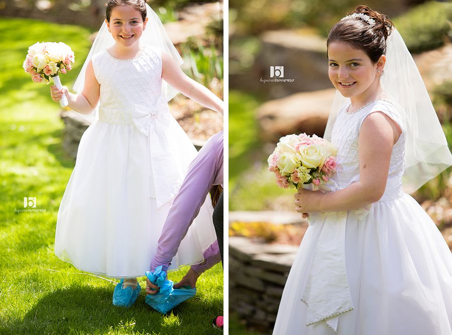 I told her mom that the picture on the left was definitely going on the blog. Booties to cover her white shoes while walking on the grass. Pretty smart, but very funny!