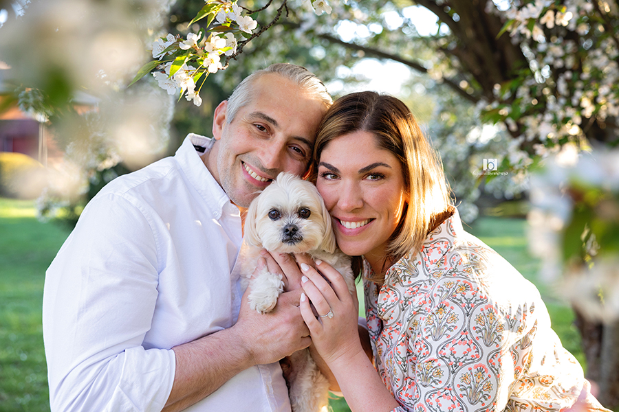 A brand new to me couple that came to me thru Emily’s sister, who’s family I photographed last fall. They are recently engaged and needed some photos for their wedding website and save the dates. Also, they wanted to include their elderly (but still way spunky) dog for a few shots. We had a lovely day for their photos and the best of the flowering trees! Wishing them the best for their upcoming wedding!