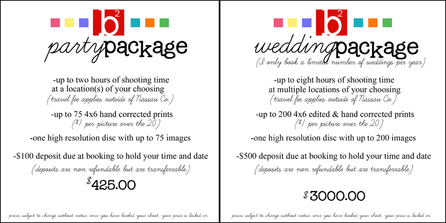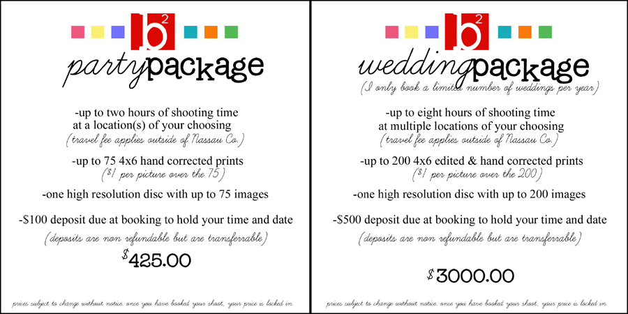 1. I do NOT charge per print. Other professional photographers charge upwards of $35 for a 5×7. You are free to take your disc and make as many enlargements, copies, etc as you wish. You own the rights to all of your images. That can be compared to a $1600 package, which you are purchasing for $350.