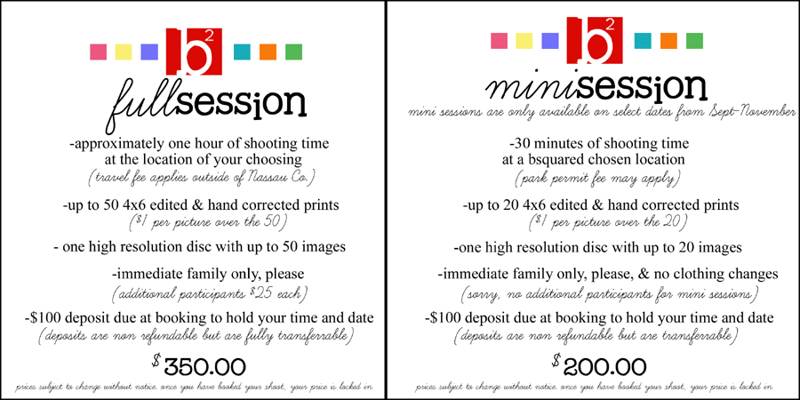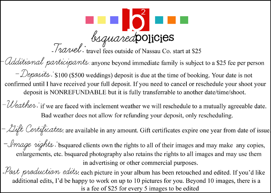 Thank you for your interest in bsquared photography. I hope that we will be working together to create beautiful, forever images of your family or your special event.