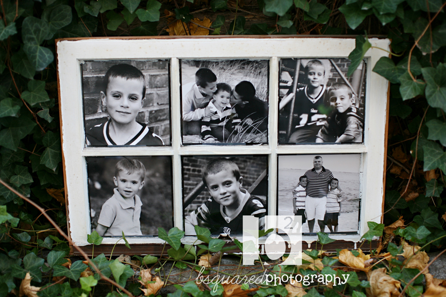 Don’t know what to do with all of your fabulous bsquared photos? Don’t want to just leave them sitting in a drawer or in an album? Want to display them in a unique and totally different way? Consider a big ‘window frame’! I use recycled windows (no two are alike) and frame your favorite photos from your bsquared session. The windows can be displayed on a mantle, on an easel, or hung on a wall. I have many windows to choose from, each different than the next. I’d love to help you pick out your unique window frame and fill it with your favorite photos.
